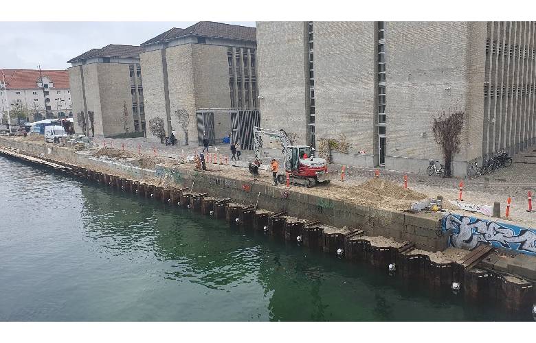 Photo: Strengthening the bulwark next to the Ministry of Foreign Affairs in Copenhagen. Photo taken by Stig Toft Madsen.