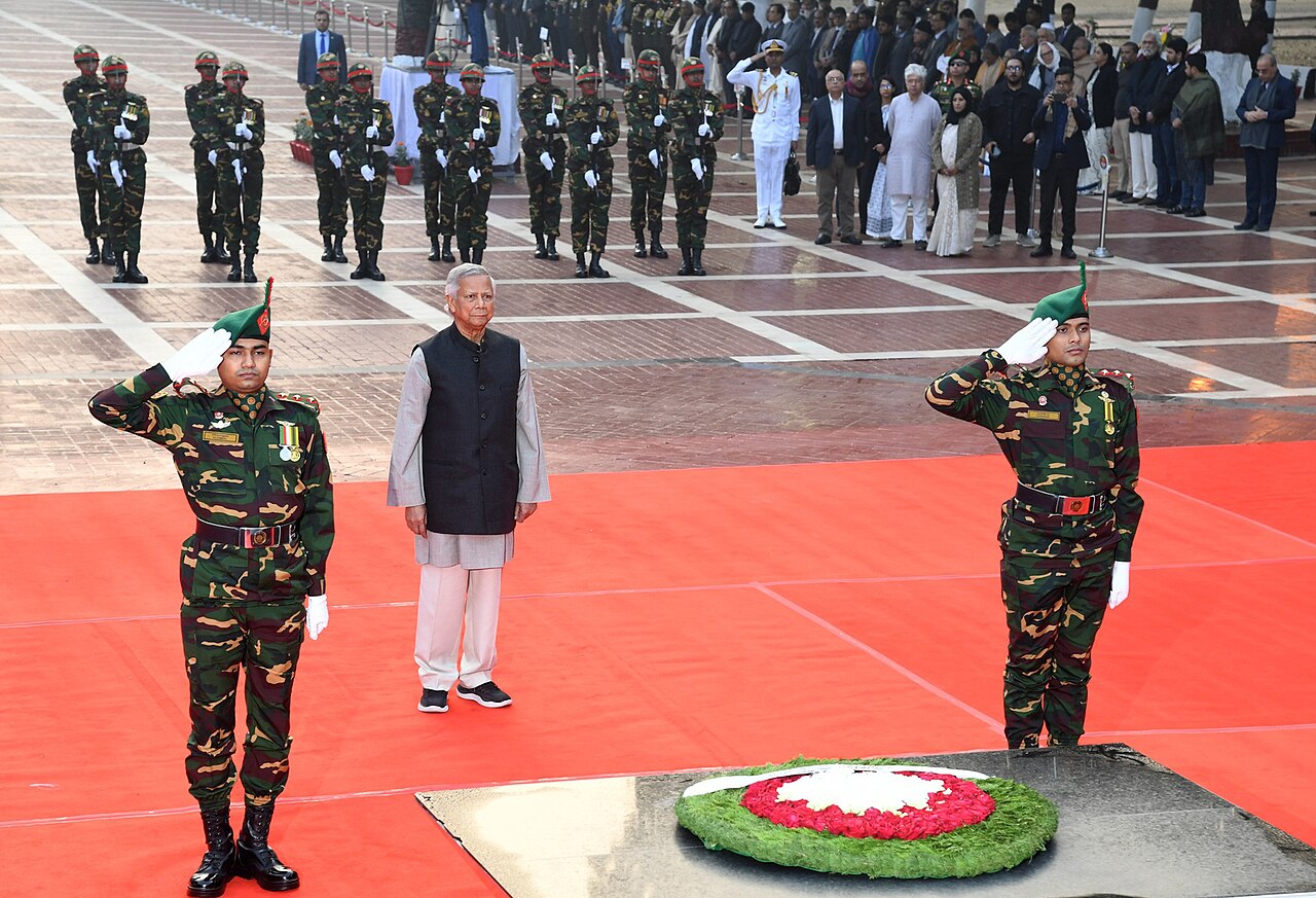 Image: Interim administrator, Professor Muhammad Yunus, at the Martyred Intellectuals Memorial, photo source: Press Information Department, Government of Bangladesh