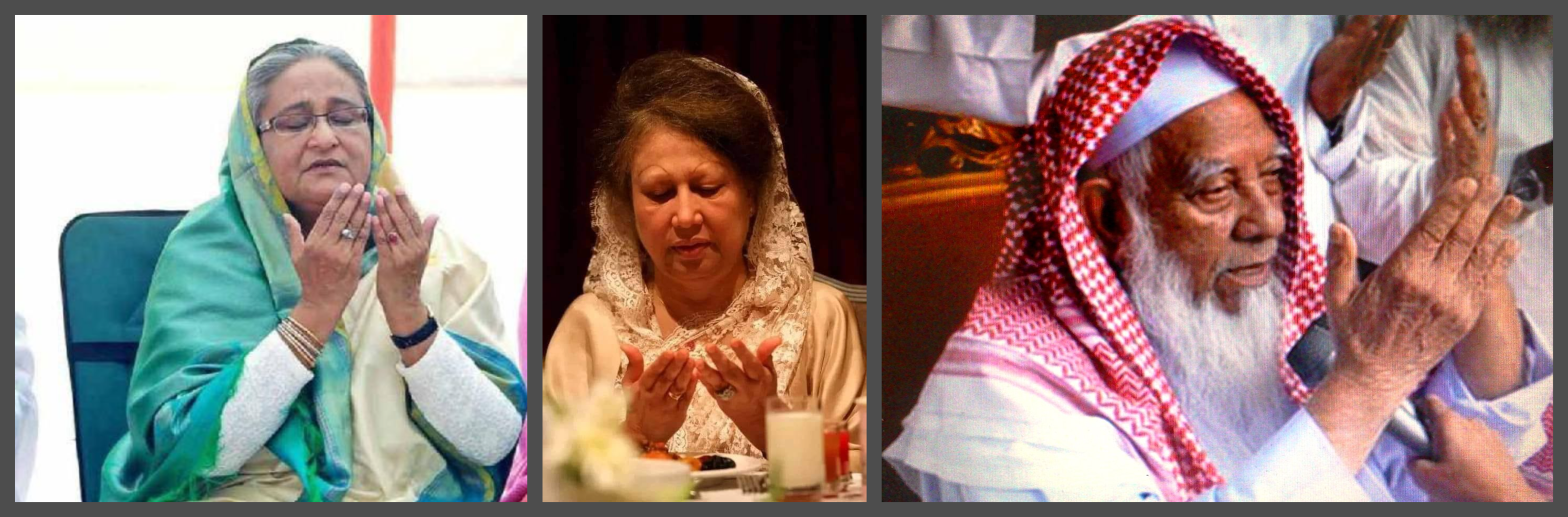 Image: The old guard of Bangladesh's politics - Sheikh Hasina (left), Khaleeda Zia (centre) and Shah Ahmad Shafi (right), a prominent Islamic scholar who was against extremism, and yet was alleged by the Awami League to be a front man for the Jamaat-e-Islami