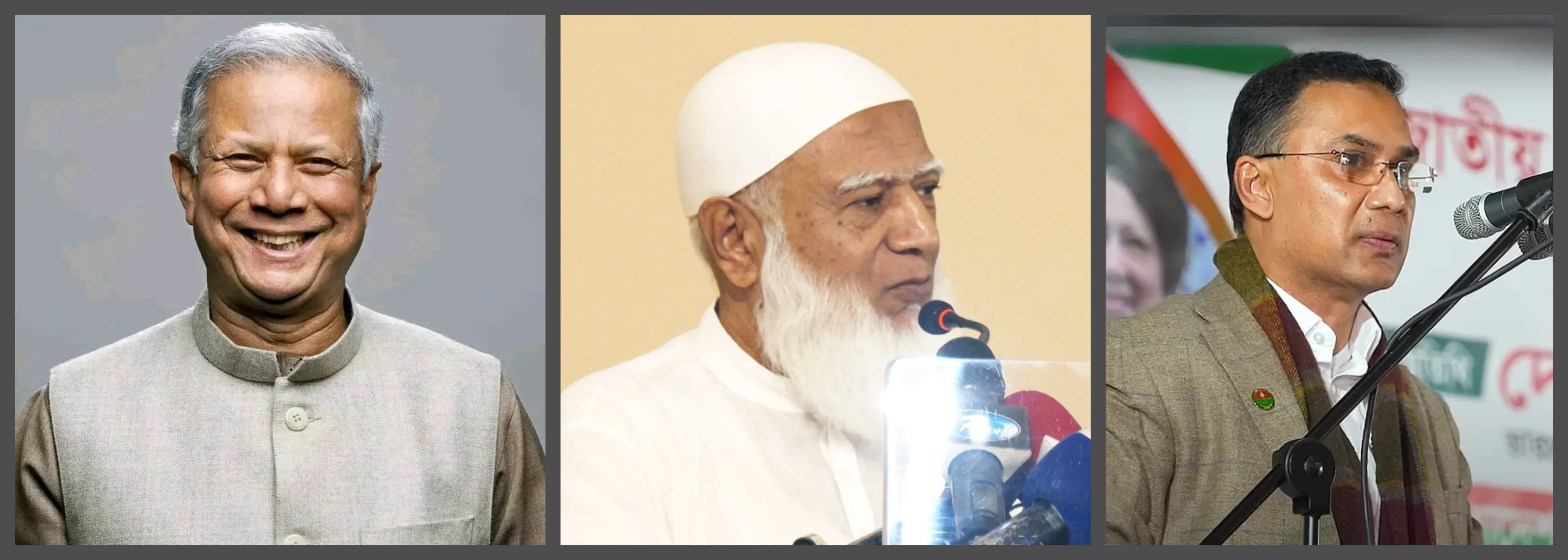 Image: The new guard of Bangladesh's politics - Muhammad Yunus, the interim administrator (left), Shafiqur Rahman, the Amir of Jamaat-e-Islami (centre), and Tarique Rahman, Khaleeda Zia's son and acting chief of the BNP (right)