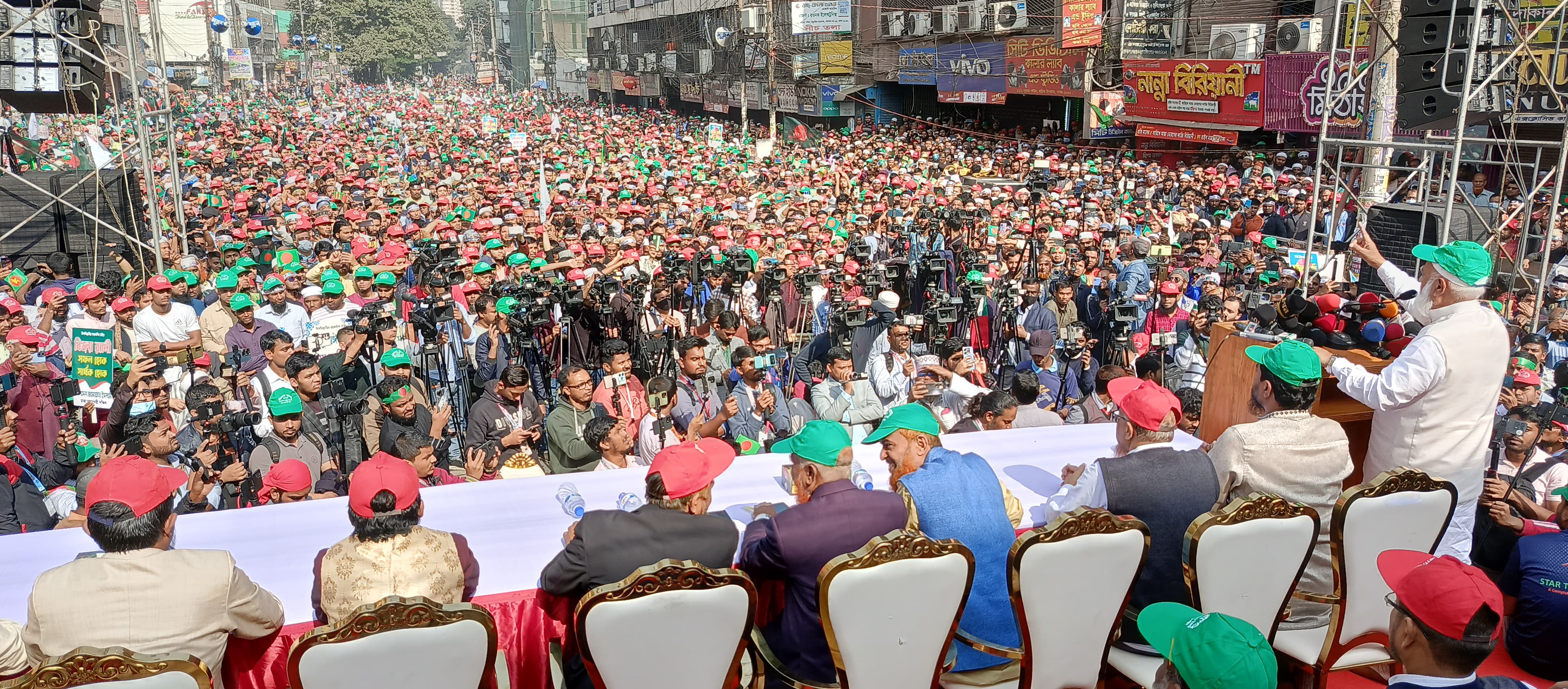 Image: A 'victory day' rally by Jamaat-e-Islami at the Dhaka City Centre in December 2024