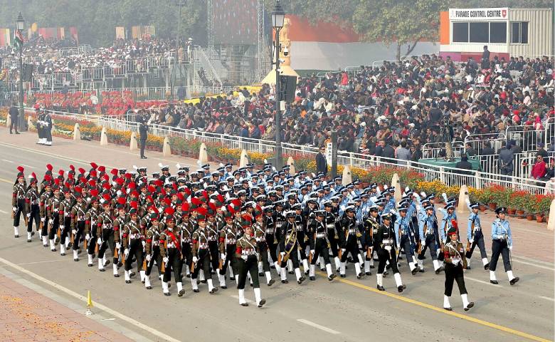 Image: An all-women contingent marches on the Rajpath/Kartavya Path on Republic Day