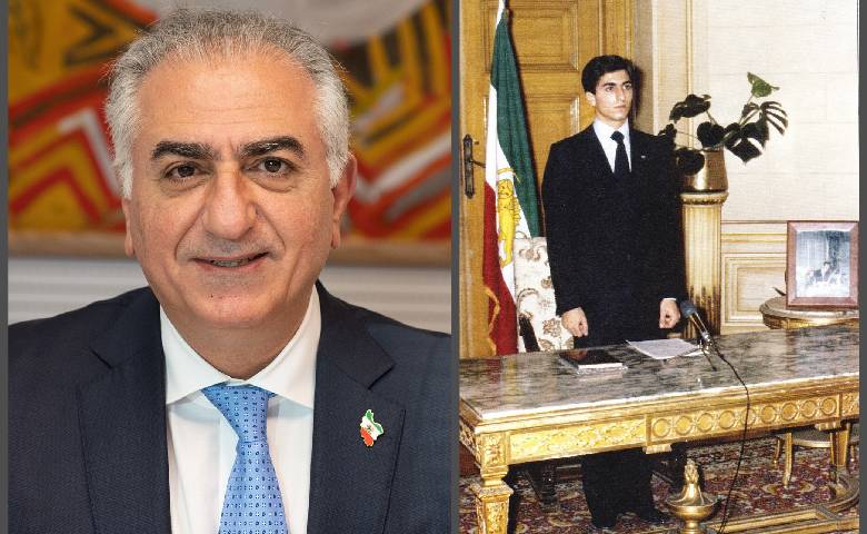 Image: Scion of the Shah dynasty, exiled prince Reza Pahlavi (left), and his swearing in as the King of Iran, while in exile in Cairo, October 1980 (right); photo source - Creative Commons