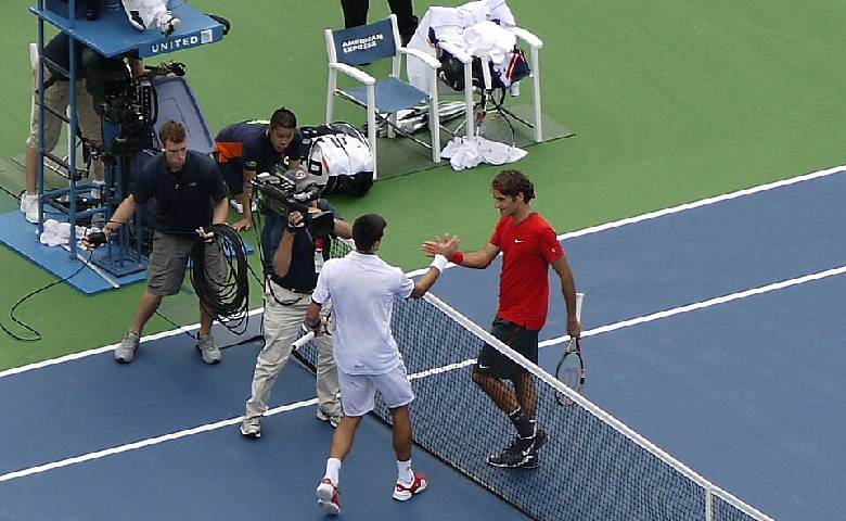 Djokovic and Federer at the US Open 2011; photo source - White House