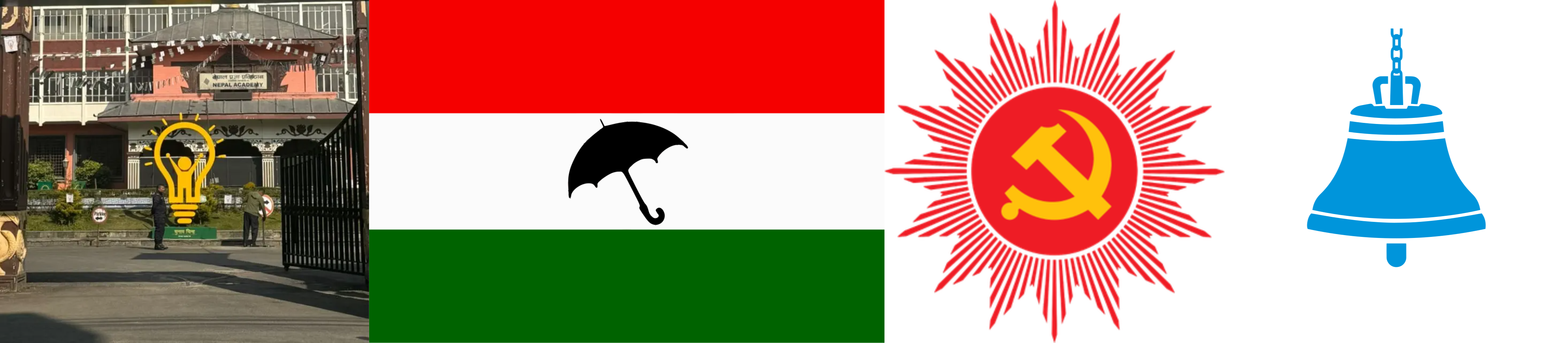 Symbols of the political parties - Ujyalo Nepal Party, People's Socialist Party, Communist Party of Nepal-Unified Marxist-Leninist, and Rastriya Swathantra Party