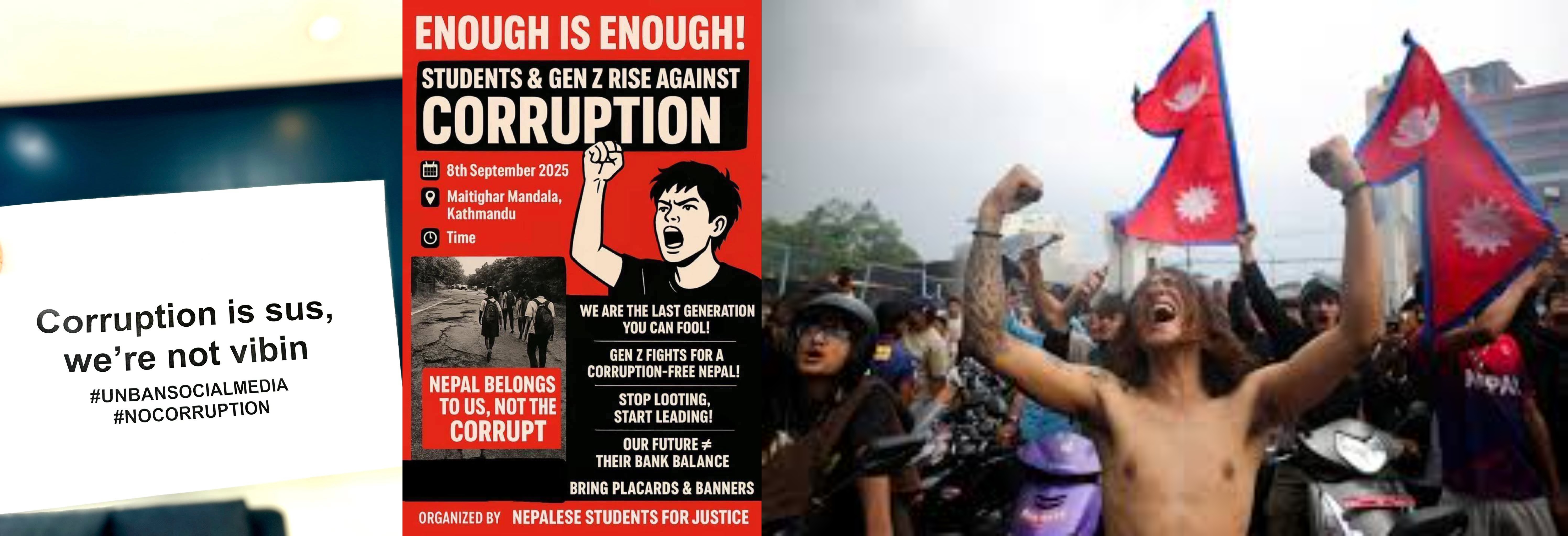The GenZ leaders: Sudan Gurung (left), K P Khanal (centre), Purushotam Yadav (right)