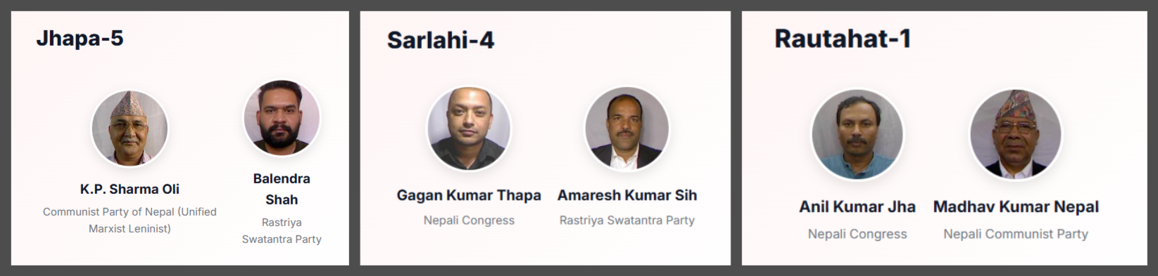 The province features several high-stakes “clashes of titans” that will decide the future of Madheshi leadership. In Sarlahi-4, newly elected NC President Gagan Thapa has made a bold gamble by vacating his Kathmandu stronghold to challenge the incumbent, Amresh Kumar Singh, who recently joined the RSP. Thapa’s “national leadership” mission faces a stern test against Singh’s local anti-establishment influence.