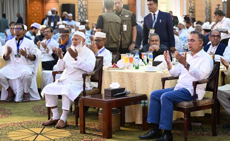 PM Tarique Rahman (right) attends an iftar organised by Jammat-e-Islami chief Shafiqur Rahman (left)