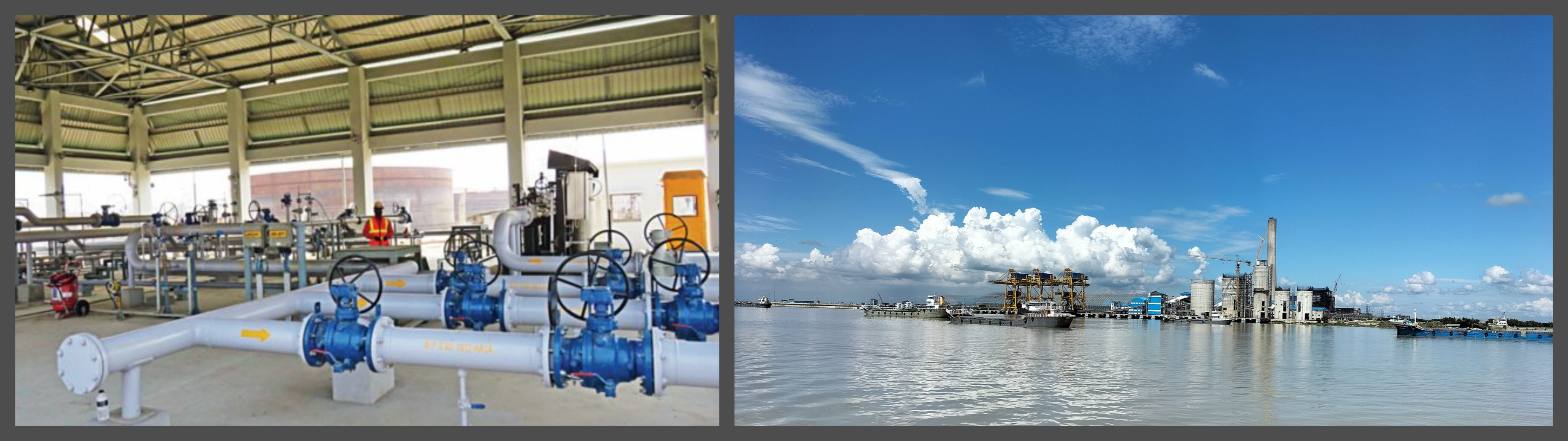 Numaligarh Refinery in Assam, from where diesel flows through the Bangladesh-India Friendship pipeline (left), and the Rampal Bangladesh-India Maitree Power Station (right); photo source - Wikimedia Commons