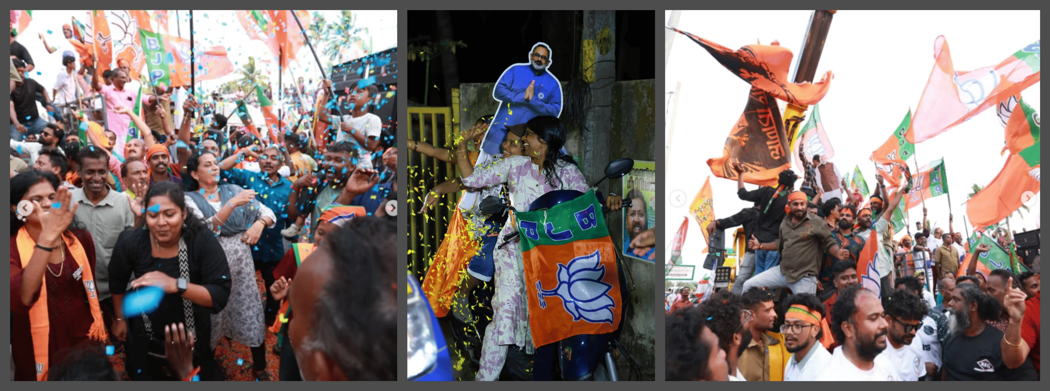 The BJP has found high number of women supporters over the past decade in Kerala (left and centre), and so too for its cultural symbols (right)