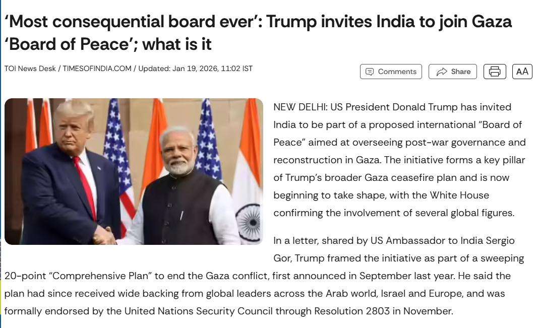 Indeed, continued US-Iran tensions — and protests within Iran — intersect indirectly with the potential distractions for the everyday functioning of this Board of Peace. Tehran’s suspicion of US-led regional restructuring may harden its opposition, while Washington may view the Board as a means to stabilise one front of an otherwise volatile region.